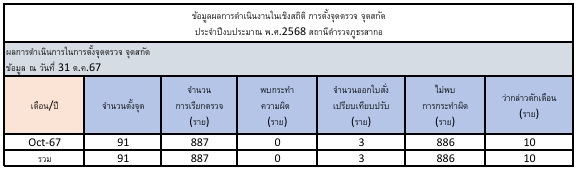 สถิติการตั้งจุดตรวจจุดสกัด เดือน ตุลาคม 2567
