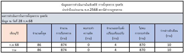 สถิติการตั้งจุดตรวจจุดสกัด เดือน กุมภาพันธ์ 2568