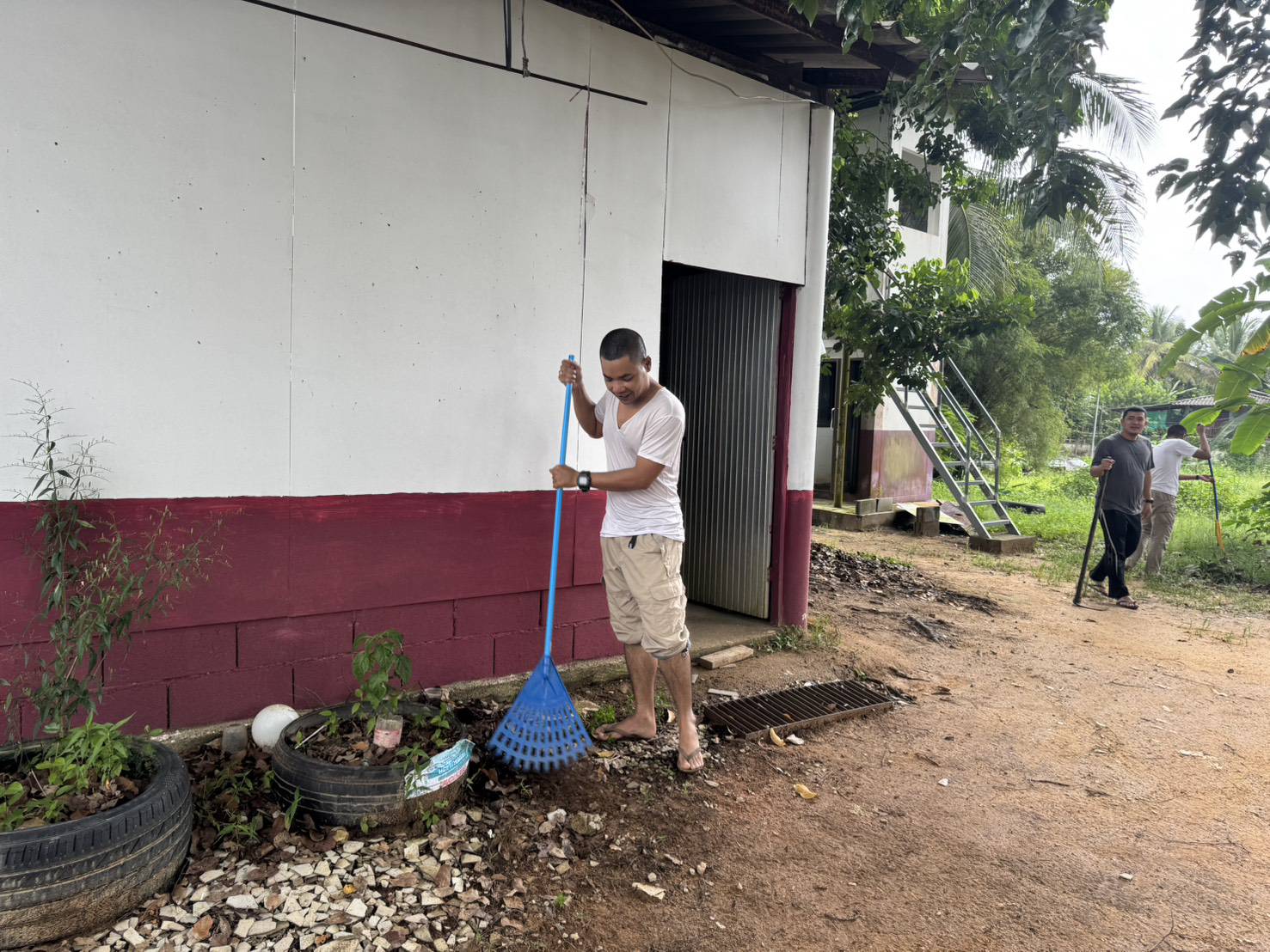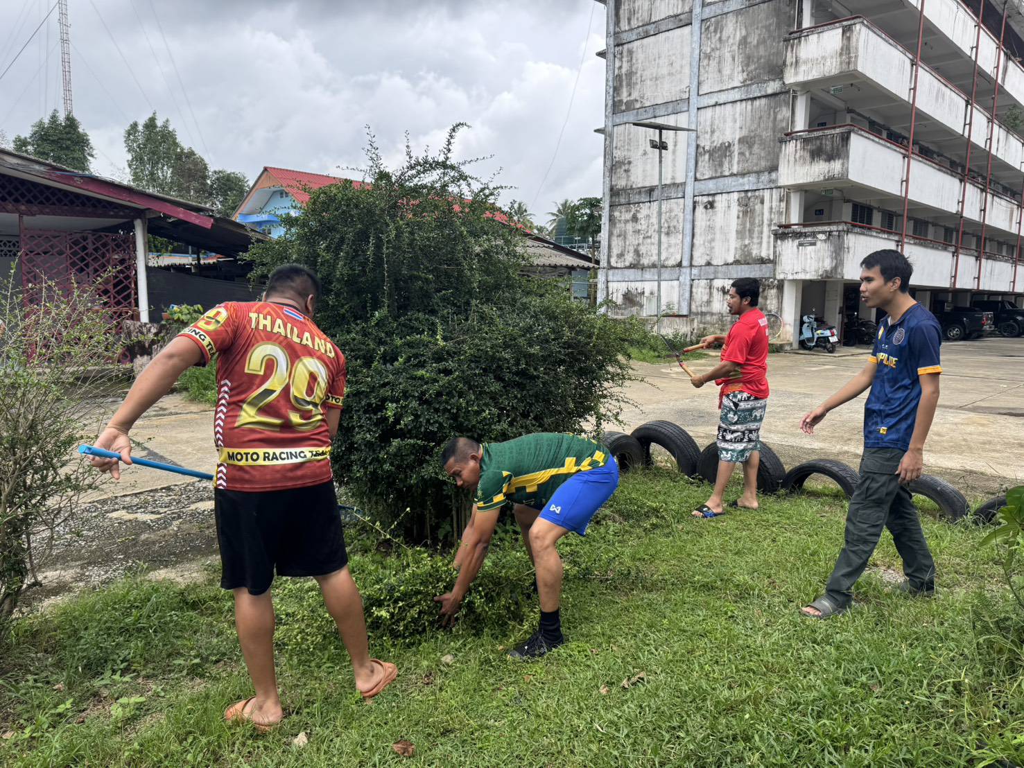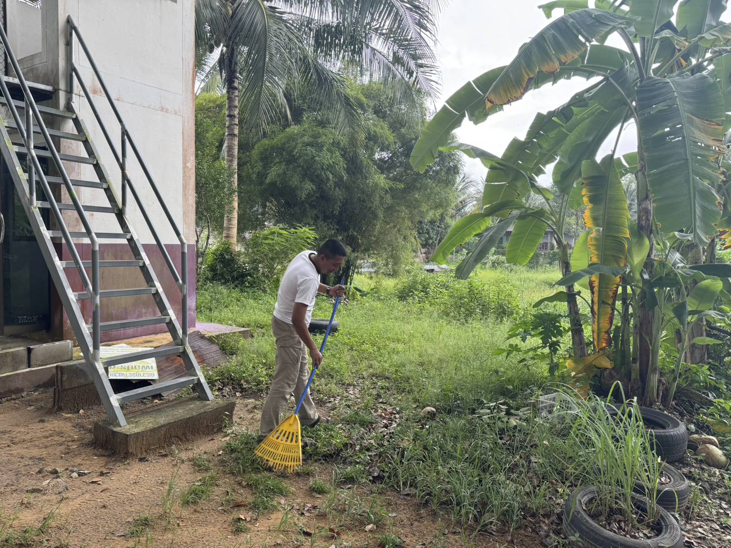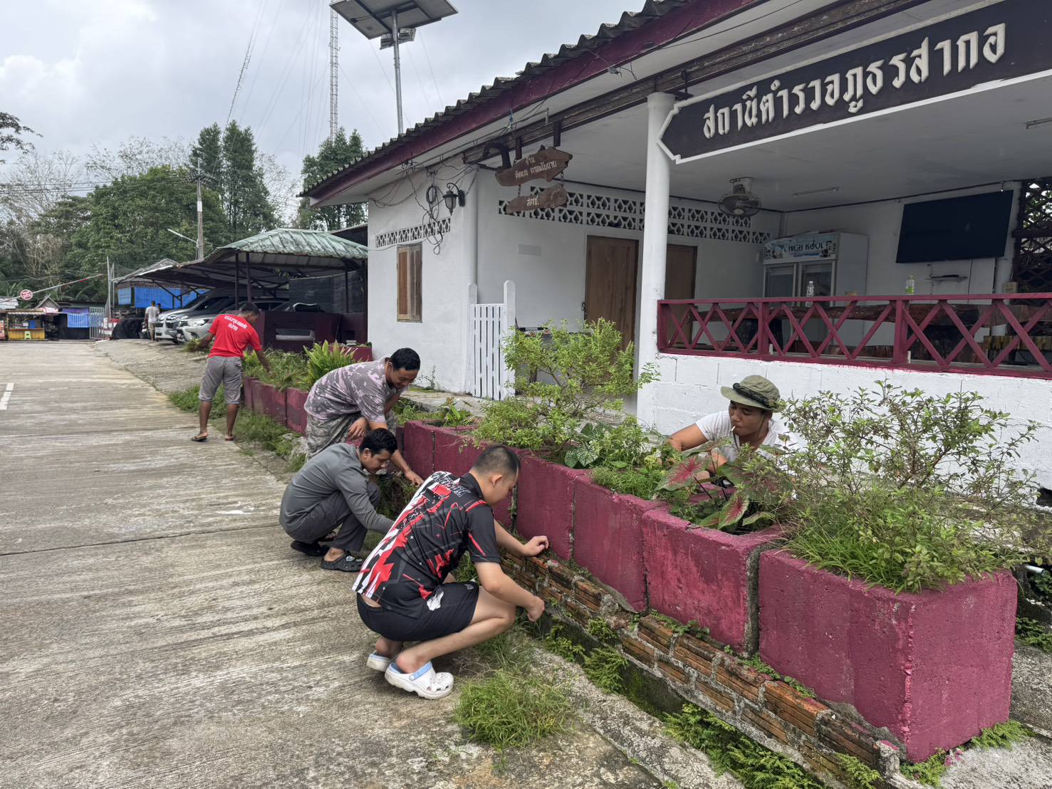 พร้อมด้วยข้าราชการตำรวจในสังกัด สภ.สากอ ร่วมกันพัฒนาที่ตั้งหน่วย ปรับปรุงภูมิทัศน์ภายใน สภ.สากอ ทำความสะอาดและปรับปรุงภูมิทัศน์ เก็บขยะรอบๆบริเวณฯ