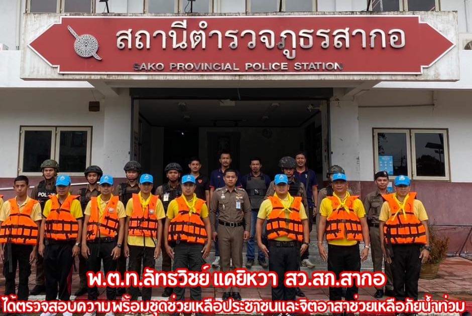 พ.ต.ท.ลัทธวิชย์ แคยิหวา สว.สภ.สากอ ภ.จว.นราธิวาส ได้ตรวจสอบความพร้อมชุดช่วยเหลือประชาชนและจิตอาสาช่วยเหลือภัยน้ำท่วม และออก ว.4 สำรวจน้ำท่วมในเขตพื้นที่รับผิดชอบ เพื่อสังเกตการณ์ดูระดับน้ำเนื่องจากในพื้นที่ฯ มีฝนตกอย่างต่อเนื่อง เพื่อเตรียมพร้อมรับมือกับภัยน้ำท่วม