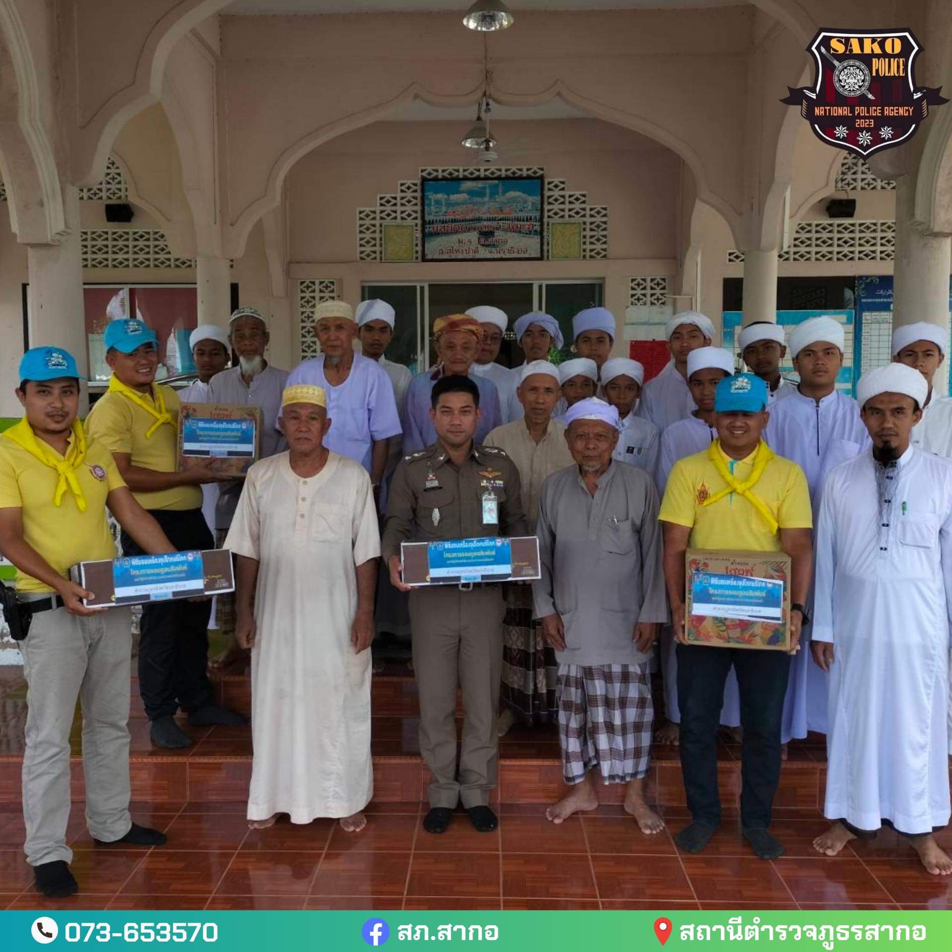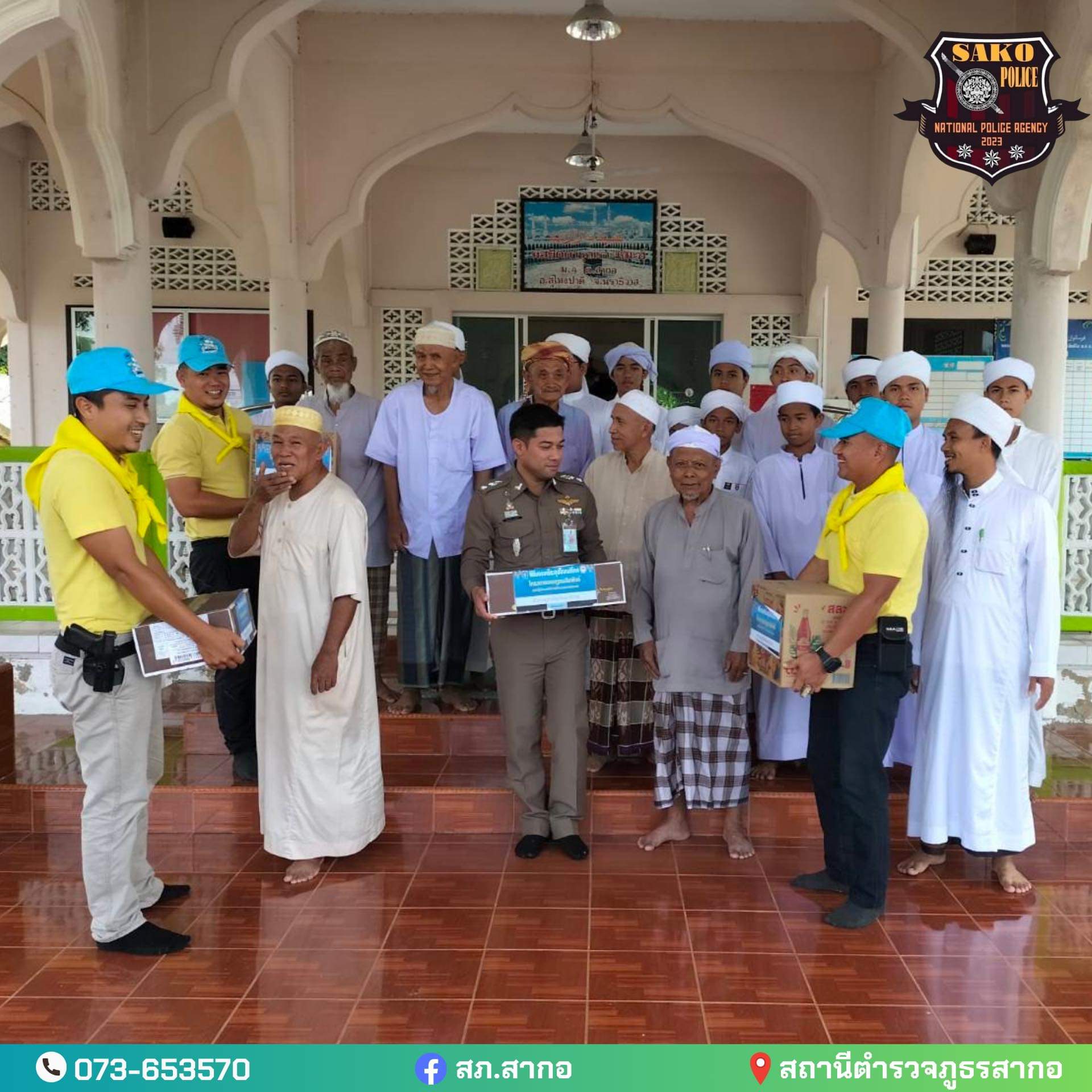 สารวัตรสภ.สากอ ได้ร่วมมอบอินทผาลัมและน้ำหวานที่ได้รับการสนับสนุนจากโครงการรอมฎอนสัมพันธ์